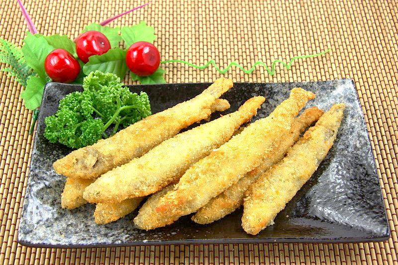 裹粉柳葉魚~油炸後金黃香酥口感外酥內嫩~一咬下肉質細嫩帶有飽滿魚卵